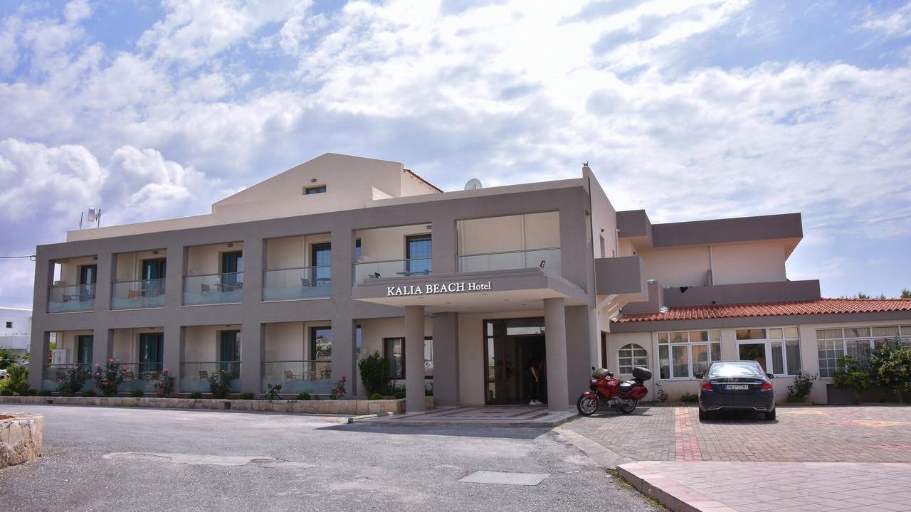 Состоит отель Kalia Beach из двухэтажного главного корпуса, нескольких коттеджей и бунгало, построенных в традиционном стиле и окруженных экзотическими деревьями: пышными пальмами и соснами с раскидистыми мохнатыми лапами. Клумбы с пурпурными цветами огорожены бордюрами из натурального камня, альпийские горки и амфоры, в которых распускаются нежные бутоны, придают территории средиземноморский колорит.
