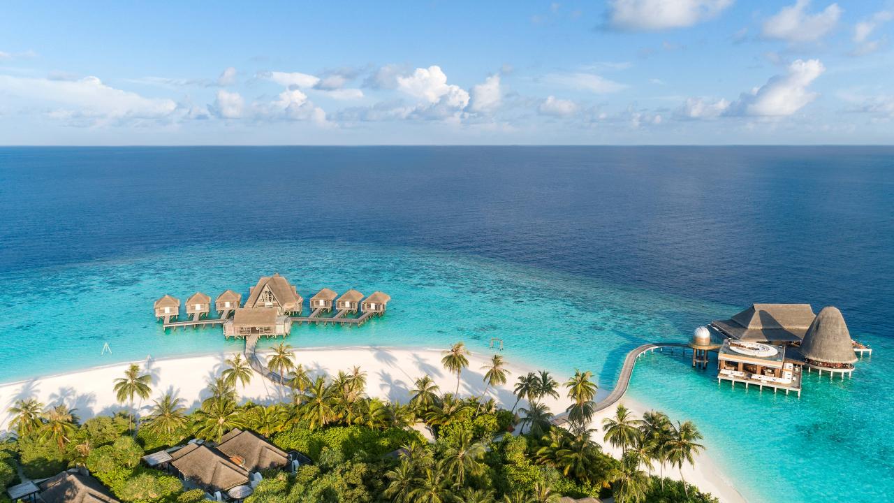 Водная вилла укомплектована кроватью размера king-size, телевизором, потолочным вентилятором, кофемашиной, мини-баром, сейфом, беспроводным интернетом, феном. Ванная комната на открытом воздухе с ванной и душем, туалетными принадлежностями. Есть терраса с частным бассейном, гамаком и прямым спуском в лагуну. Предоставляются велосипеды, меню подушек, услуги дворецкого.