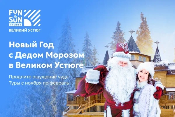Новый год — волшебный праздник, особенно для детей, которые уже с ноября начинают писать письма Деду Морозу и ждать подарки. Вы можете сделать Новый год для себя и своей семьи еще более особенным, если посетите Великий Устюг. Там, на вотчине Деда Мороза, детей ждут сказочные представления, встречи с любимыми героями, а главное — возможность передать письмо Дедушке лично в руки. Чтобы праздники прошли не только интересно, но и выгодно, FUN&SUN запускает эксклюзивные туры в Великий Устюг по специальным ценам.