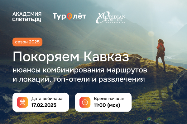 Экспертный вебинар «Покоряем Кавказ: нюансы выбора и сочетания маршрутов, топ-отели и развлечения 2025»