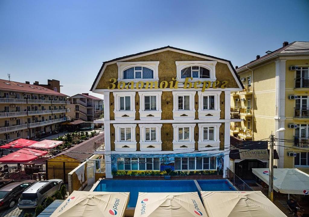 Отель «Золотой берег» расположен в курортном посёлке Витязево. До международного аэропорта Анапа 10 км. Гости могут воспользоваться услугой заказа трансфера.