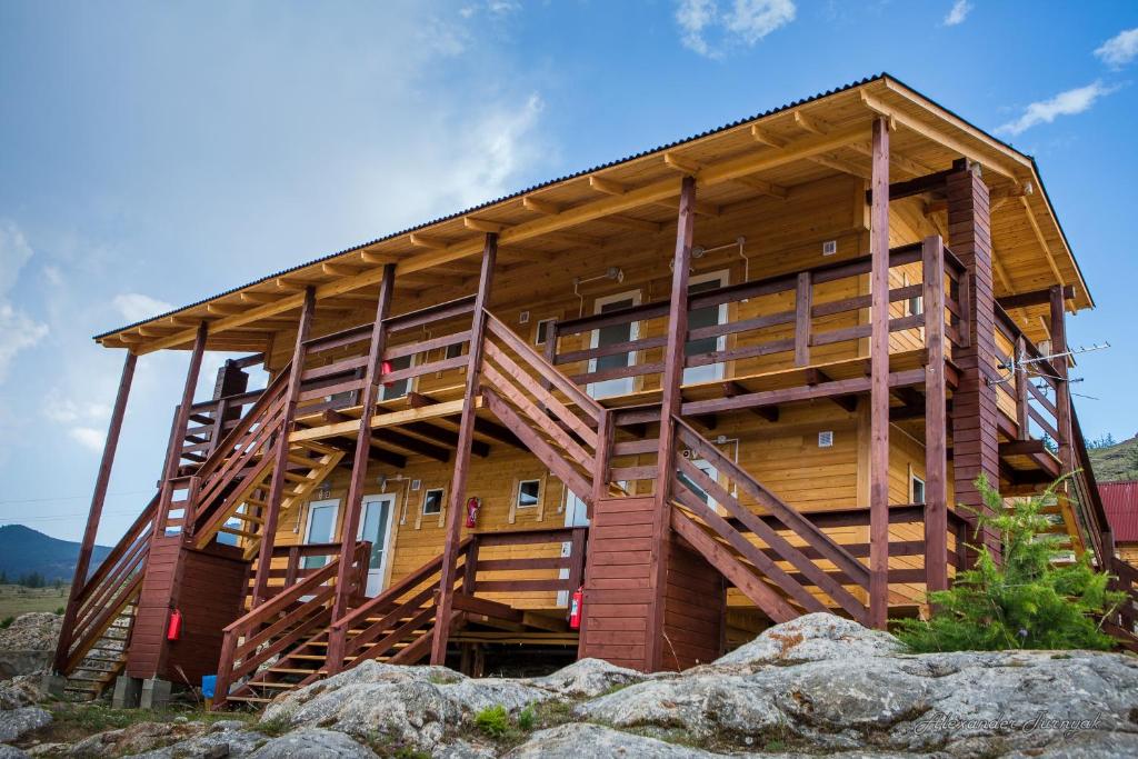 Эко-дом - максимальное размещение 2 человека. В отдельно стоящих неблагоустроенных деревянных эко-домиках есть односпальные кровати, умывальники и туалет расположены неподалеку, душ с горячей водой - на территории турбазы (платно). Размещение возможно с 15 июня по 01 сентября.