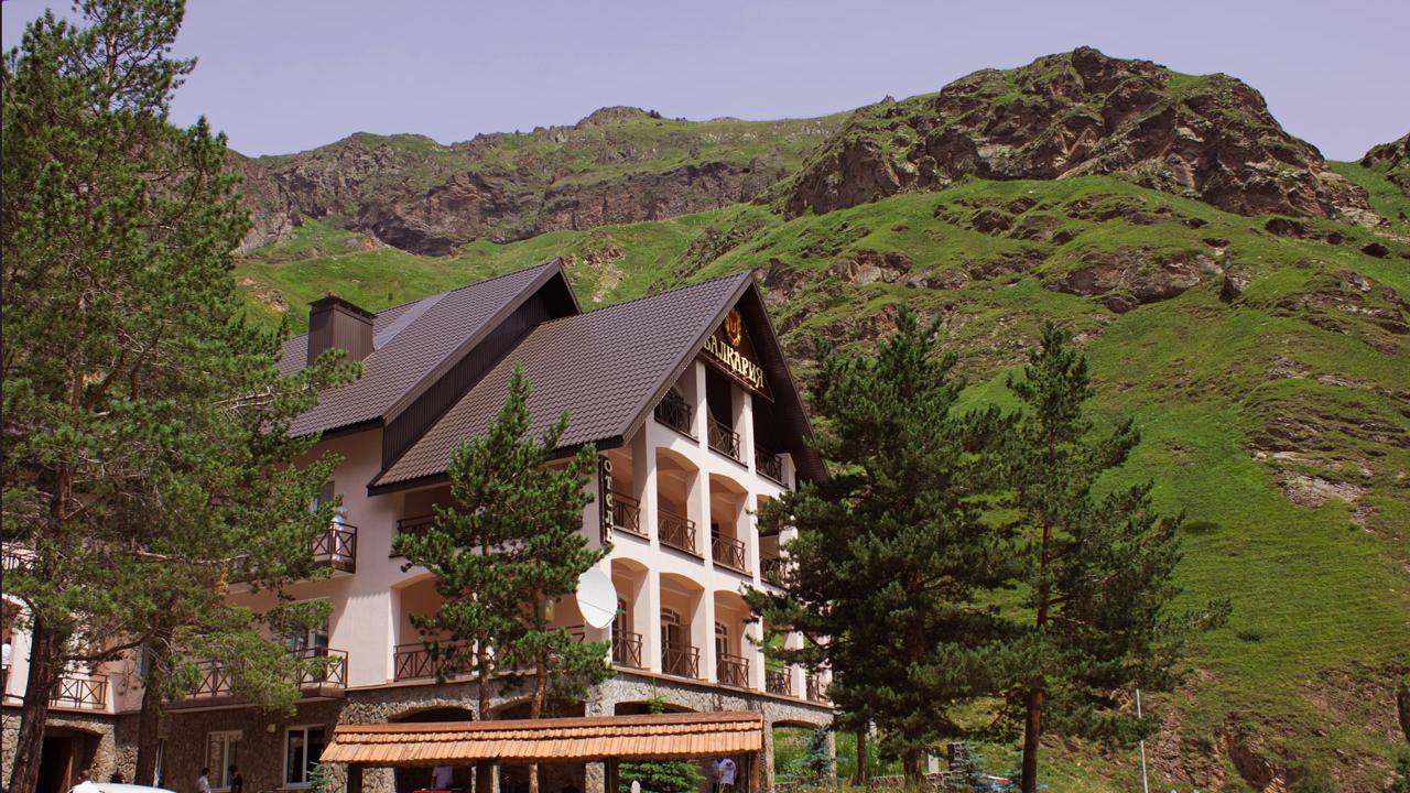 Отель «Балкария» расположен в 125 км от аэропорта Нальчик, на поляне Азау на высоте 2300 метров над уровнем моря у подножья Эльбруса в удивительно красивом месте Приэльбрусья.