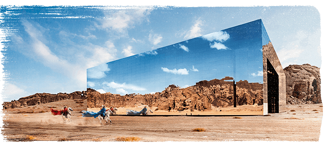 В пустыне региона Аль-Ула можно увидеть невероятное зрелище – песчаные дюны и окружающие горы отражаются в гигантской зеркальной призме. Это здание – концертный зал Maraya, что переводится как «зеркало». Здесь проходят фестивали, выступления артистов, иммерсивные спектакли, а снаружи находится выставка арт‑объектов.