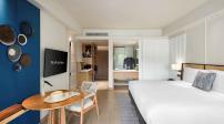 Двухкомнатный номер включает в себя спальню с двуспальной кроватью, гостиную с комплектом мягкой мебели, ванную комнату с душем и ванной, балкон с видом на лагуну. В комплектации телевизор, кондиционер, сейф, мини-бар, беспроводной Интернет, кофемашина, фен. Привилегии: доступ в клубный лаундж, послеобеденный чай и вечерние коктейли.