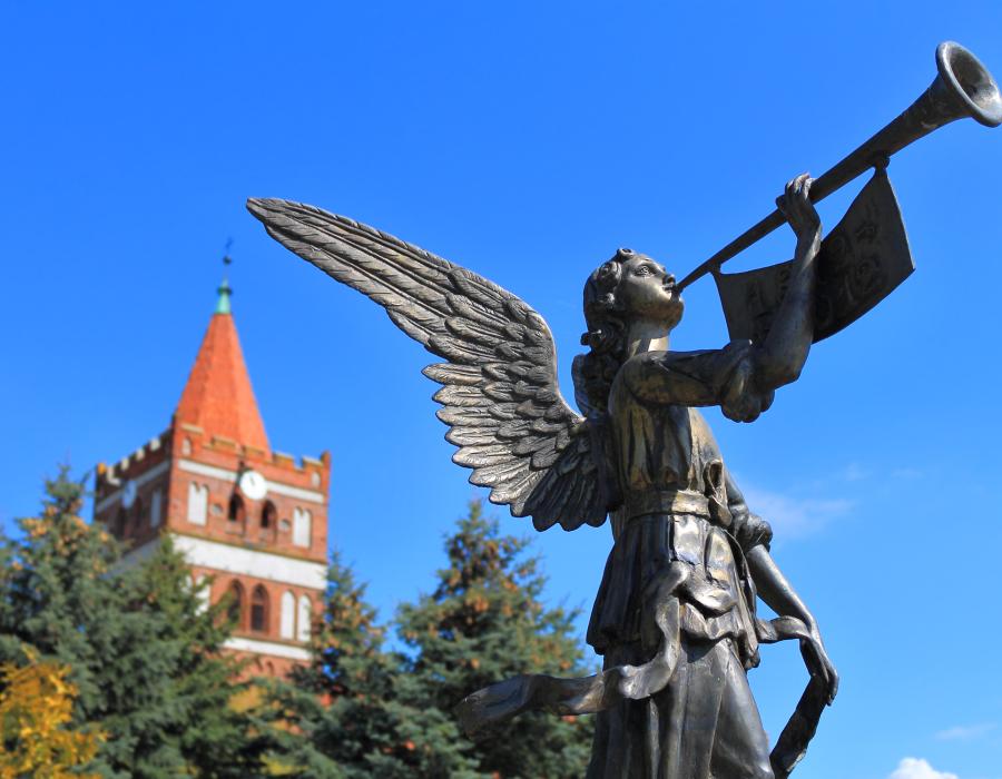 Центральную площадь города украшает храм Всех Святых. Увидите и скульптуру золотого ангела на стеле, Гумбинненского лося, а также архитектурные украшения города: Здание управления правительственного округа Гумбиннена «Новое правительство» (в стиле барокко), Здание Народного банка (в стиле неоготики).