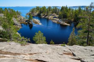 Чтобы добраться до Национального парка мы посетим один из заливов Ладожского озера с отвесными скалами и красивой легендой о девушке – русалке. Здесь начнем прогулку на катере по шхерам, совершая выходы на некоторых островах. Вы пройдете по проливам, где бывали викинги и воевал со шведами флот Петра I. В шхерах можно увидеть небольшие, но очень живописные водопады, добраться до которых другим способом непросто.