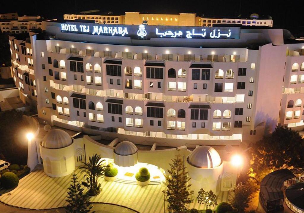 белоснежное здание Tej Marhaba, плавным полукругом охватывающее обширную